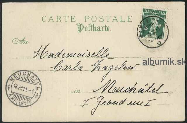 ŠVAJČIARSKO: o 1905?, záber z vidieka v litografickom rámiku, zaslaná v roku 1911, pekná kvalita
