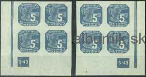 Čechy a Morava: ** NV 11, 5h, oba dolné rohové 4-bloky s DZ 3-43, neprerušený rám, Pof: 80 Kč