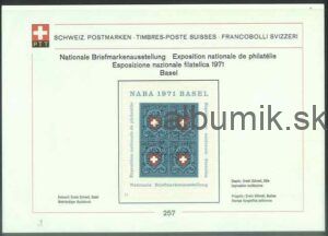 ŠVAJČIARSKO: 1971 o Mi Bl.21, NABA, nálepný list s hárčekom k výstave, Mi: 3 M€