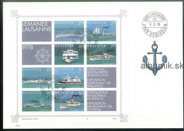 Švajčiarsko: Mi Bl. 23, výstava LEMANEX´78 Lausanne, Mi: 9 M€