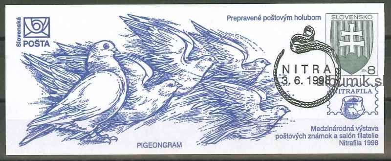 Pigeongram pre holubiu poštu CHP 2 s príležitostnou pečiatkou 1.dňa, katalóg Zberateľ 2012: 4,5 €