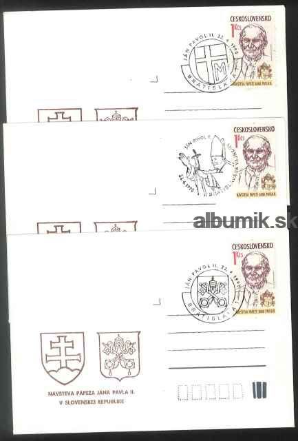 ČSR 1990, 3 obálky k návšteve Pápeža Jána Pavla II., rôzne príležitostné pečiatky