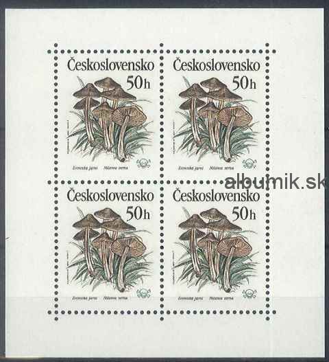 ČSR: ** SL 2909 (L), nevydaný zošitkový list Huby 50h; ľavý 4-blok – – bsPO v pravom okraji PL