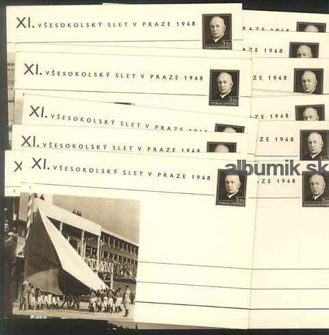 ČSR II: (*) CDV 90 1/16, kompletná séria 16 ks obrazových poštových lístkov E. Beneš: XI. Všesokolský zlet 1948