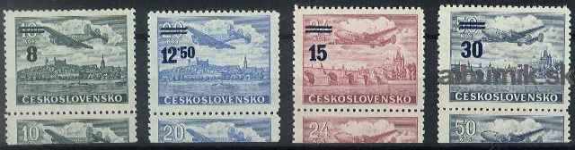 ČSR ** L29-32 KD, r. 1949, Pretlačové provizóriá , kupón/okraj dole