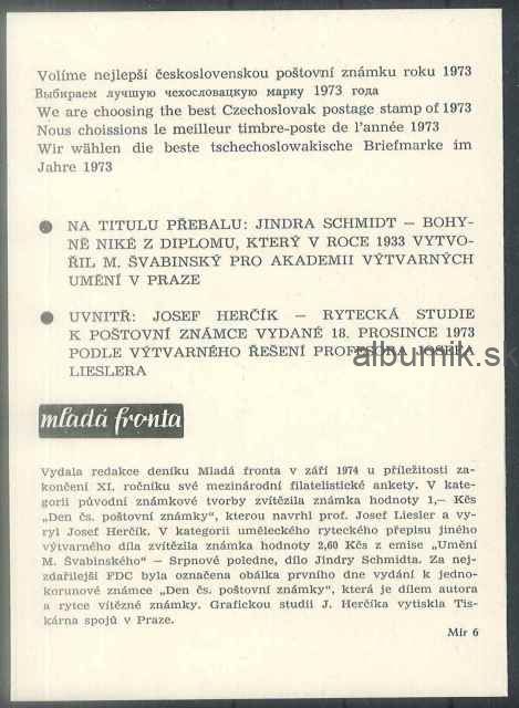 ČSR II: Suvenír ankety MF: SU 11 s prilohou a obalom (1973)