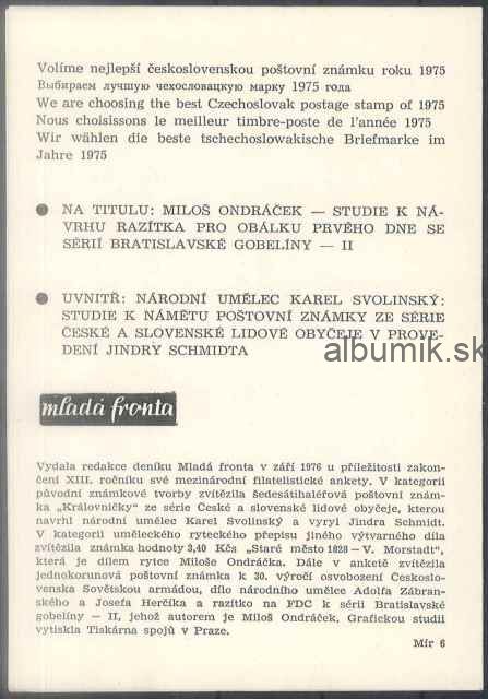 ČSR II:  Suvenír ankety MF: SU 13 s prilohou a  obalom (1975)
