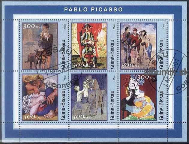 Guinea-Bissau, 2001, o 1618-23, Kb 6*300 Fr. Umenie – Pablo Picasso, kat. Michel: 8 M€