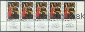 Izrael ** Mi 454TB, M. Chagal: Kráľ Dávid kompletná spodná 5-páska s rôznymi kupónmi, Mi: 8 M€