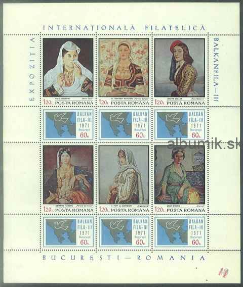Rumunsko, ** Mi 2931 -6 KB, Výstava Balkanfila 1971 – emisia Rumunské umenie, Mi: 10 M€