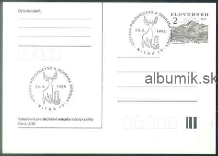 SR 1995, poštový lístok s prp Nitra 10: Výstava poľovníctvo a ochrana prírody