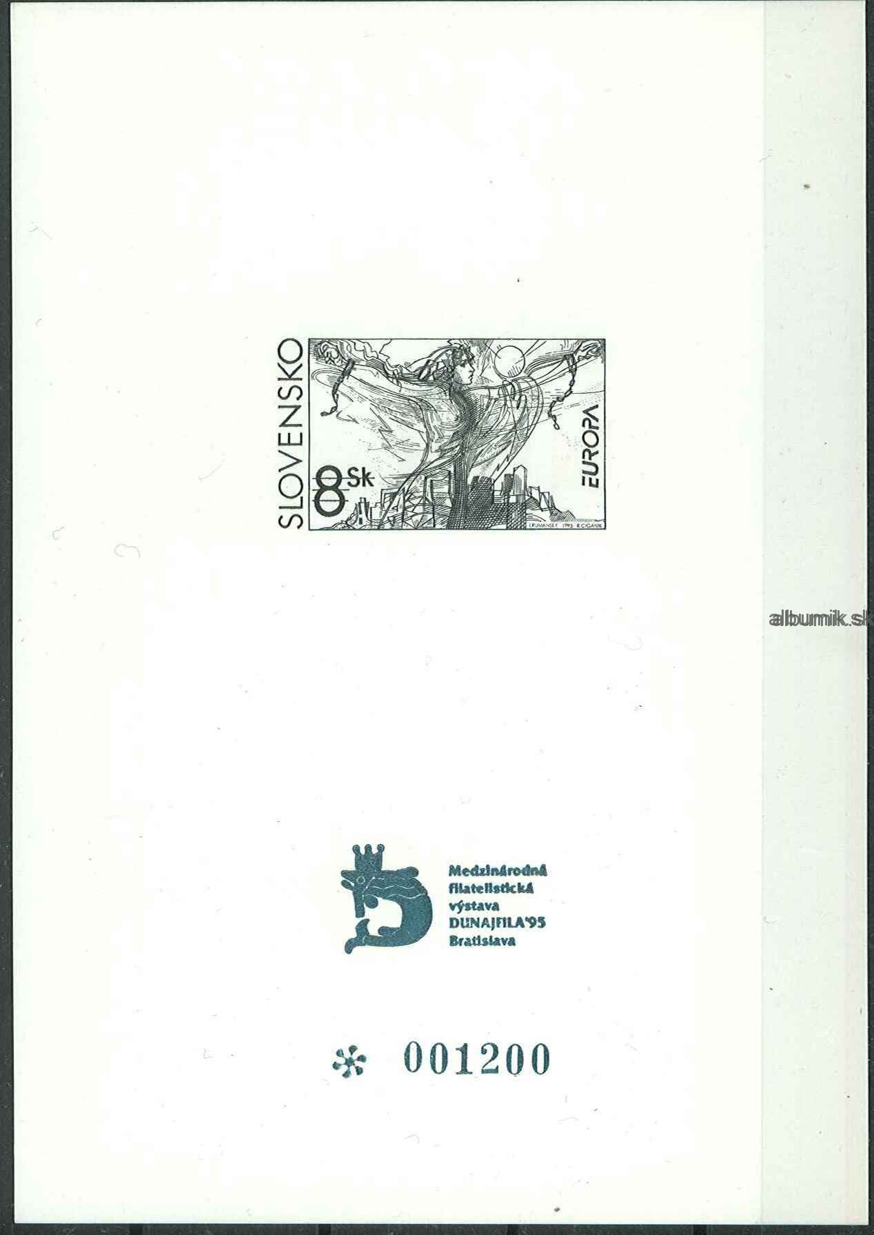 SR 1995, PT 8a, EUROPA Mier a sloboda, zelená prítlač Dunajfila, kat. Zberateľ 2013: 21,60 eur